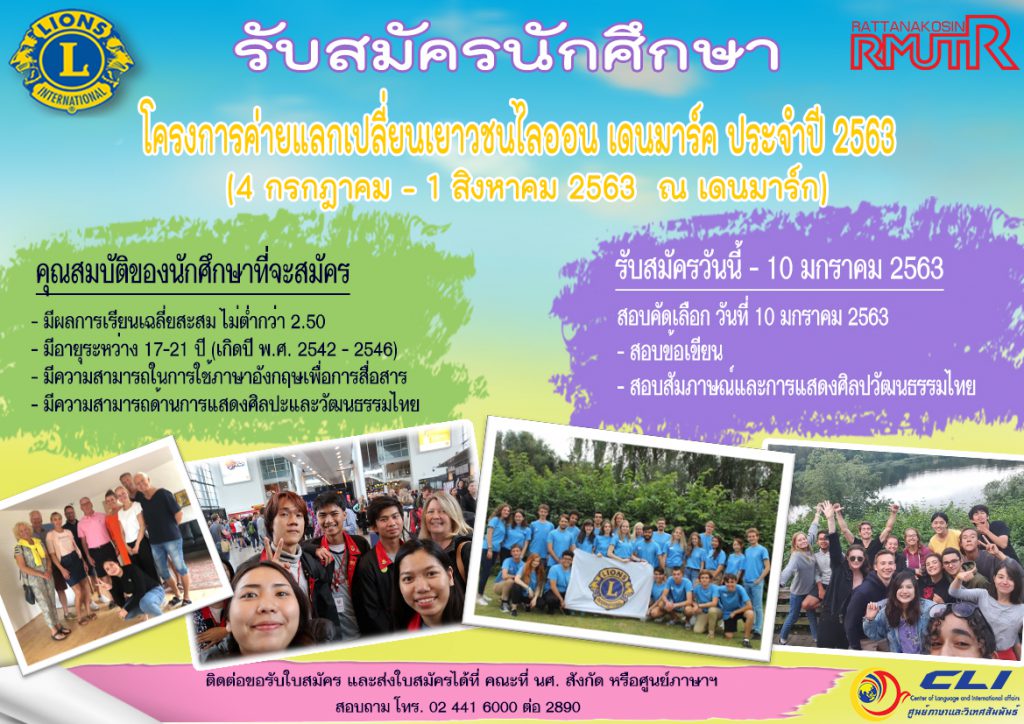 โอกาศดีๆมาแล้ว สำหรับน้องๆที่สนใจไปเข้าแคมป์ที่ประเทศเดนมาร์ครวมระยะเวลา 1 เดือน สนใจสามารถรับใบสมัครและส่งใบสมัครได้ที่คณะที่น้องๆสังกัดอยู่หรือที่ศูนย์ภาษาและวิเทศสัมพันธ์ ตึกสิรินธร ชั้น 2 ตั้งแต่วันนี้จนถึง 10 มกราคม 2563
