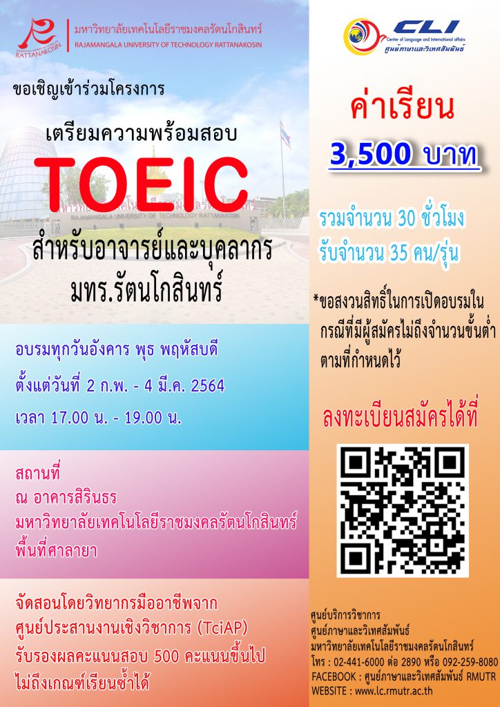 โครงการเตรียมความพร้อมสอบ Toeic สำหรับอาจารย์และบุคลากร มทร.รัตนโกสินทร์