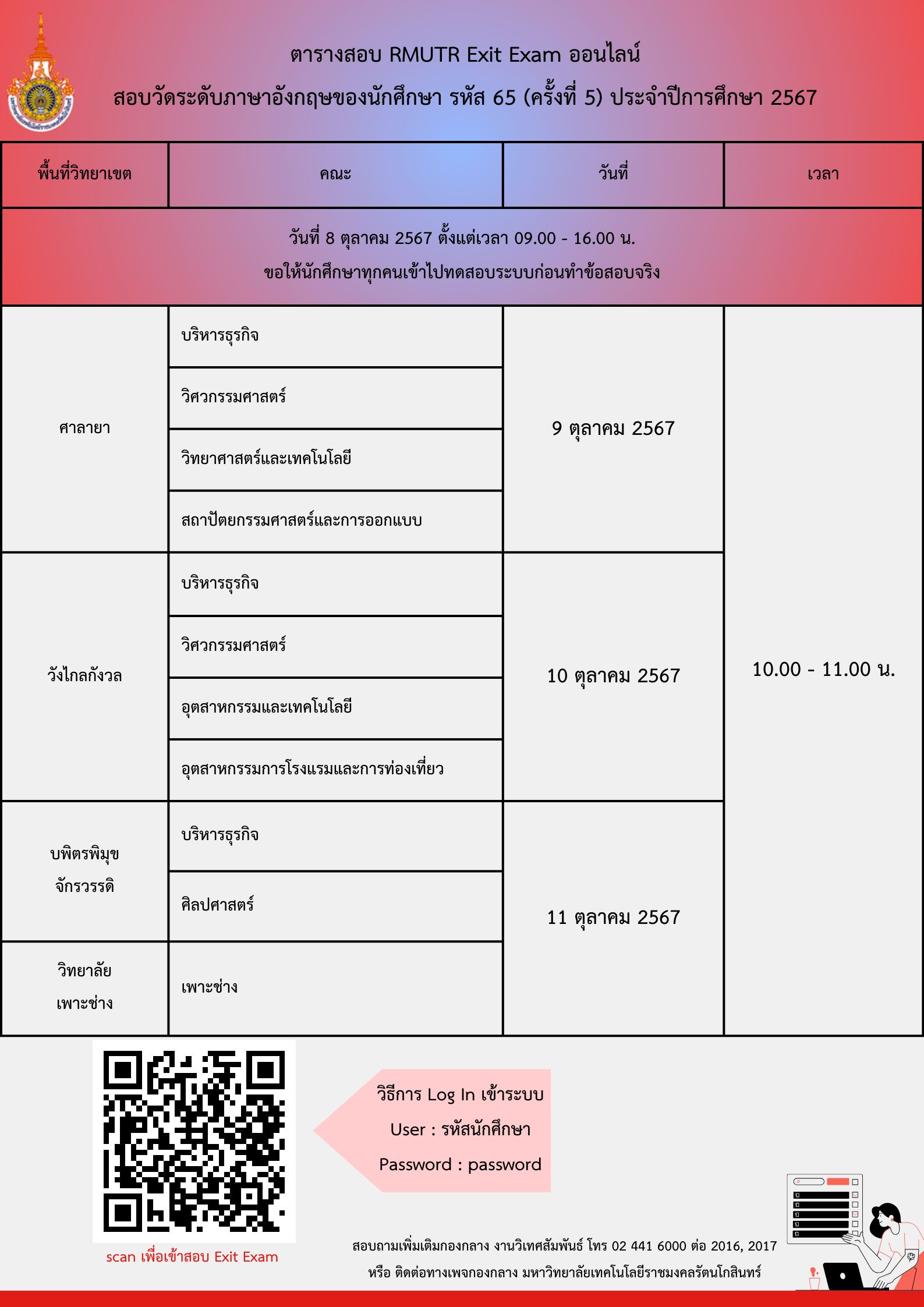 กด Ctrl+F เพื่อค้นหารายชื่อ หากนักศึกษาไม่พบรายชื่อตนเองให้ติดต่อ Facebook Fanpage กองกลาง มหาวิทยาลัยเทคโนโลยีราชมงคลรัตนโกสินทร์ (https://www.facebook.com/cli.rmutr)***