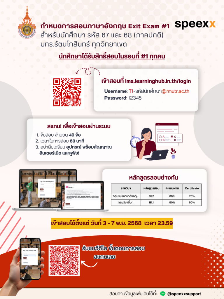 ตารางสอบและรายชื่อนักศึกษารหัส 68 ที่ต้องสอบ RMUTR Exit Exam (ครั้งที่ 1)