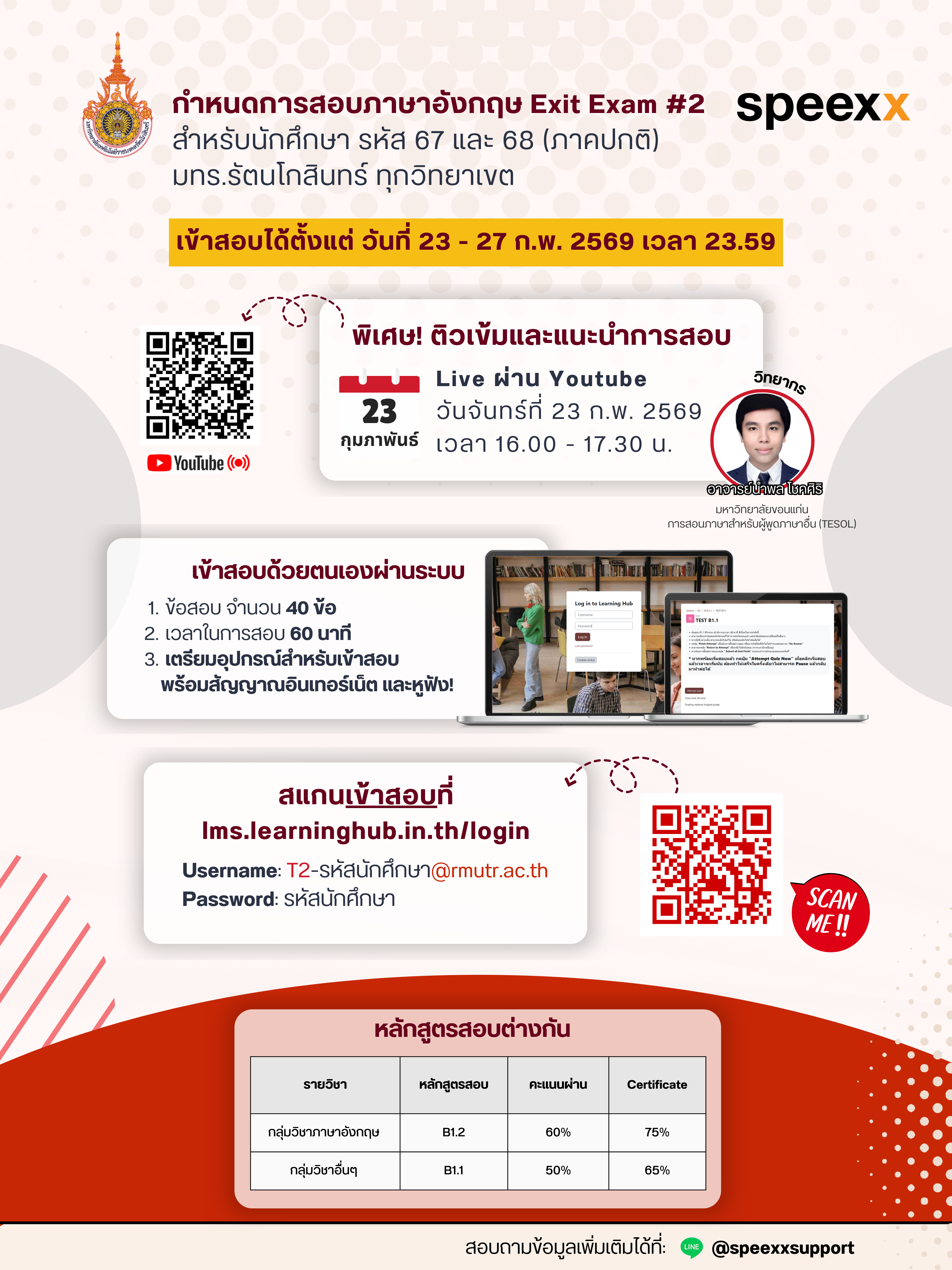 กด Ctrl+F เพื่อค้นหารายชื่อ หากนักศึกษาไม่พบรายชื่อตนเองให้ติดต่อ Facebook Fanpage กองกลาง มหาวิทยาลัยเทคโนโลยีราชมงคลรัตนโกสินทร์ (https://www.facebook.com/cli.rmutr)***
